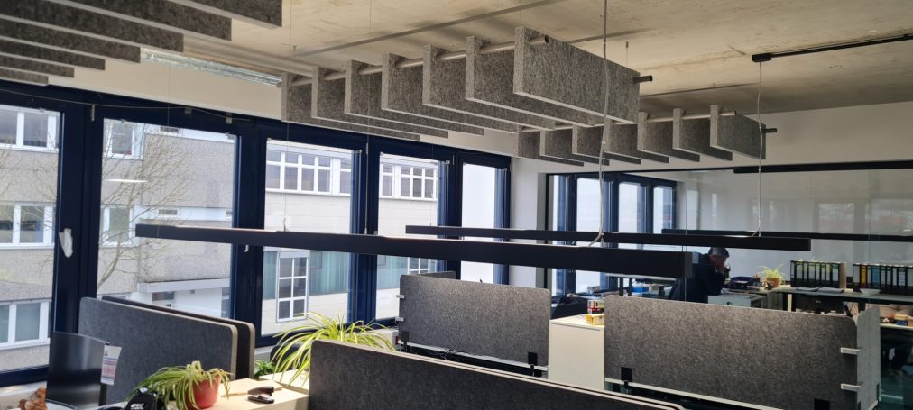 Ihre individuellen Vorstellungen unterstützen wir mit Empfehlungen aus jahrelanger Expertise. Dabei sind in Form, Farbe und Ausführungen keine Grenzen gesetzt. Ob Schallschutz-Elemente in rund, eckig oder in Zylinderform, bezogen mit farbigen Stoffen oder besonders attraktiv ein Fotomotiv mit indirekter Beleuchtung. Ideen gibt es viele - wir realisieren sie für Sie.